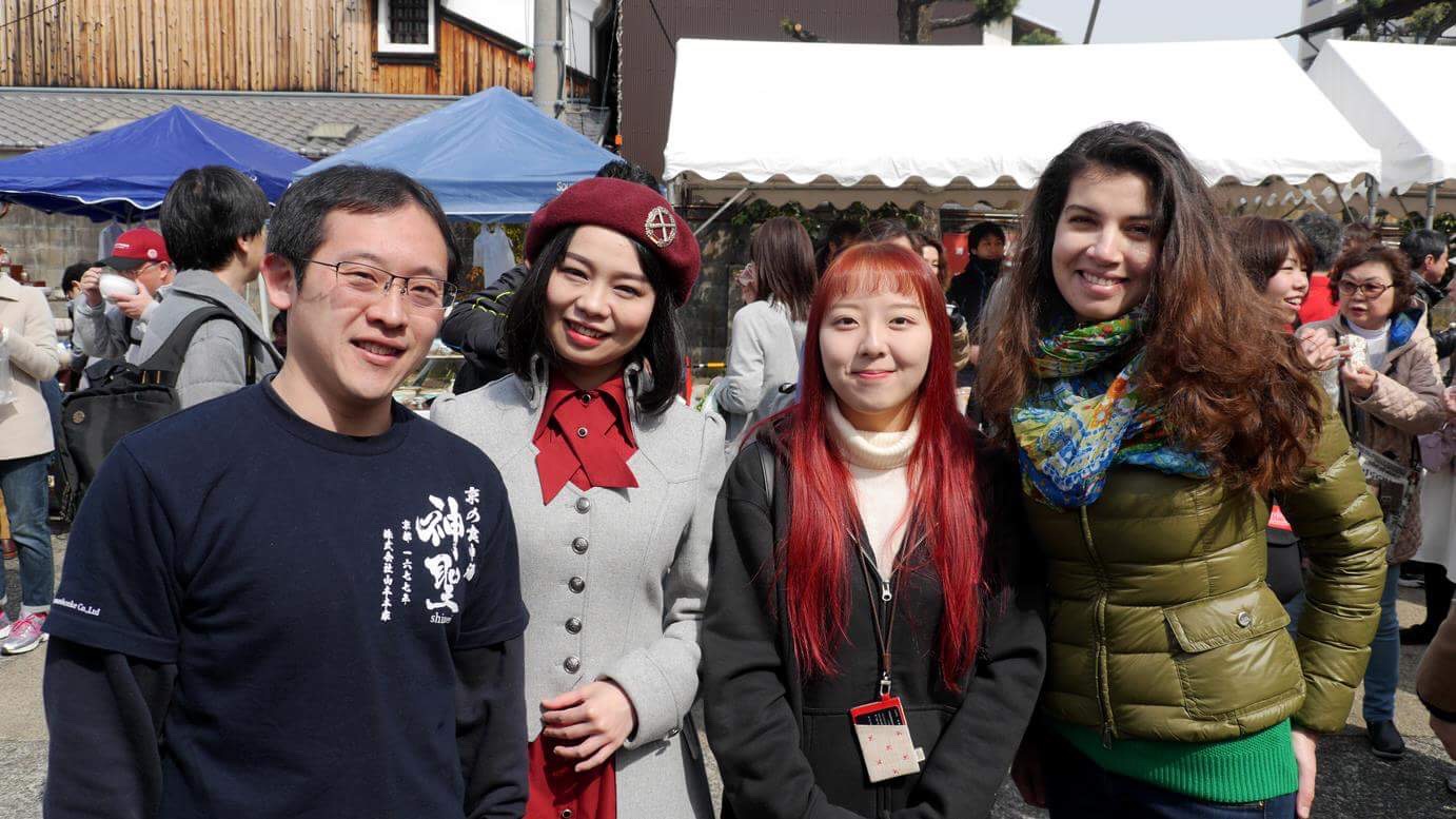 我们还一起品尝了各式甜点,我最喜欢的还是わらび餅、跟果冻一般入口即化,甜而不腻。还看到用酿酒的余料制作的味噌汤。原本味噌汤应该是棕色的,加入酒糟的味噌汤呈白色,也有一股酒香。